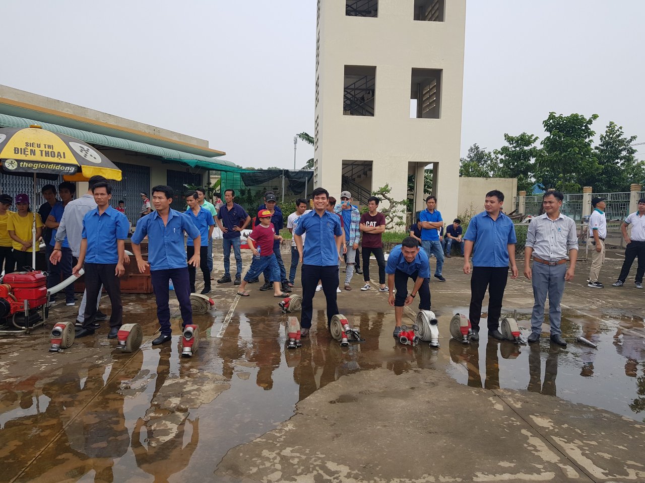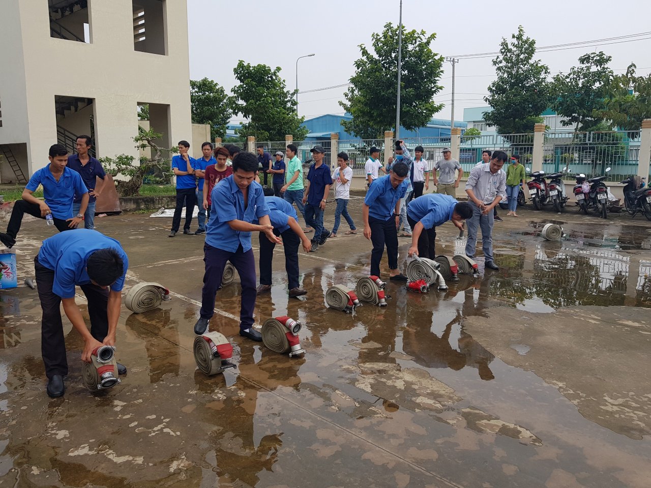 Chiều cùng ngày, Đội phòng cháy chữa cháy của công ty đã thực hành công tác chữa cháy và vận hành các thiết bị dưới sự chỉ huy, hướng dẫn, quản lý của cán bộ Phòng cảnh sát PCCC.